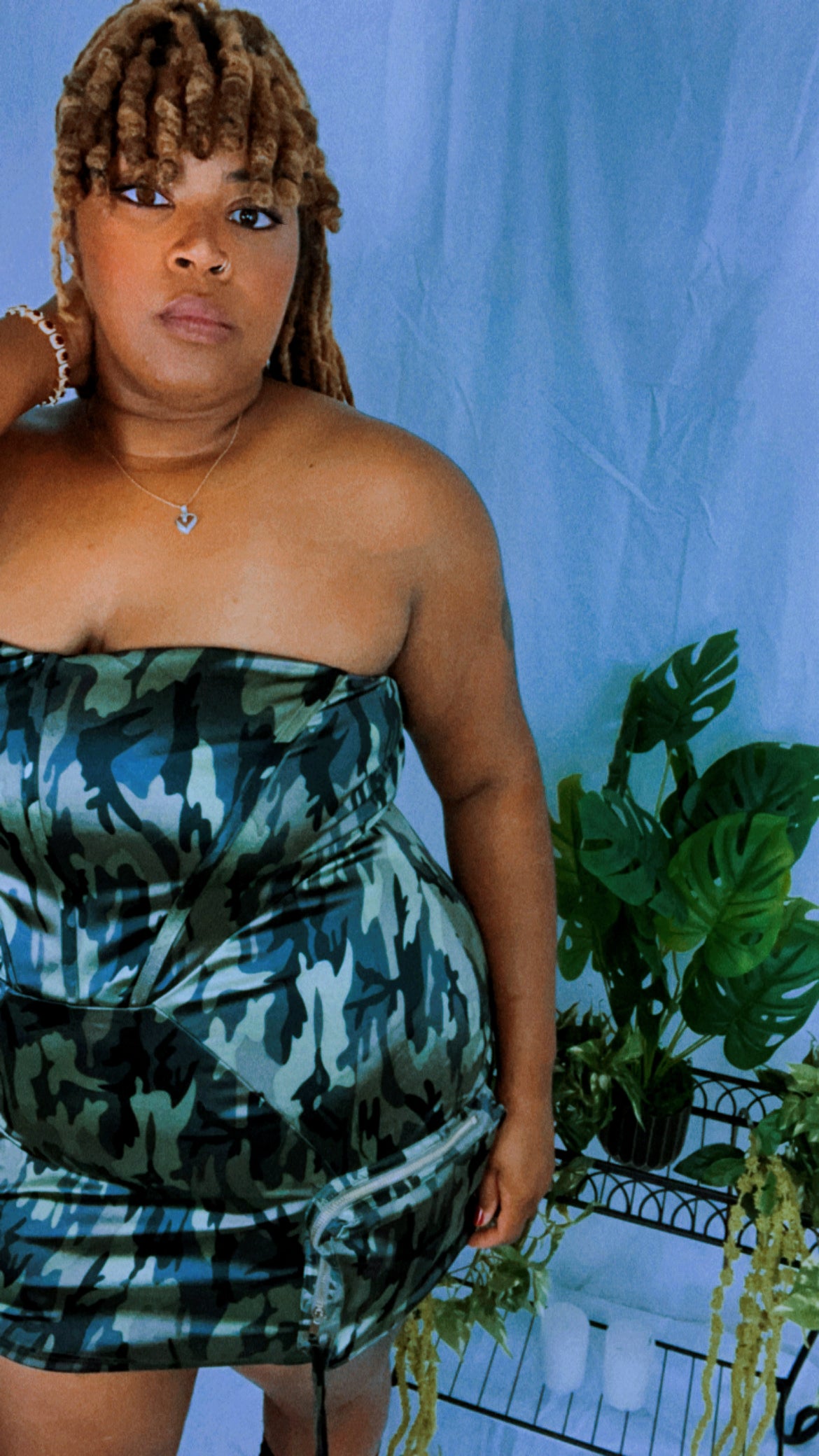 - Semi-stretch dress, Tube, Straight neckline, Pockets, Zipper closure.